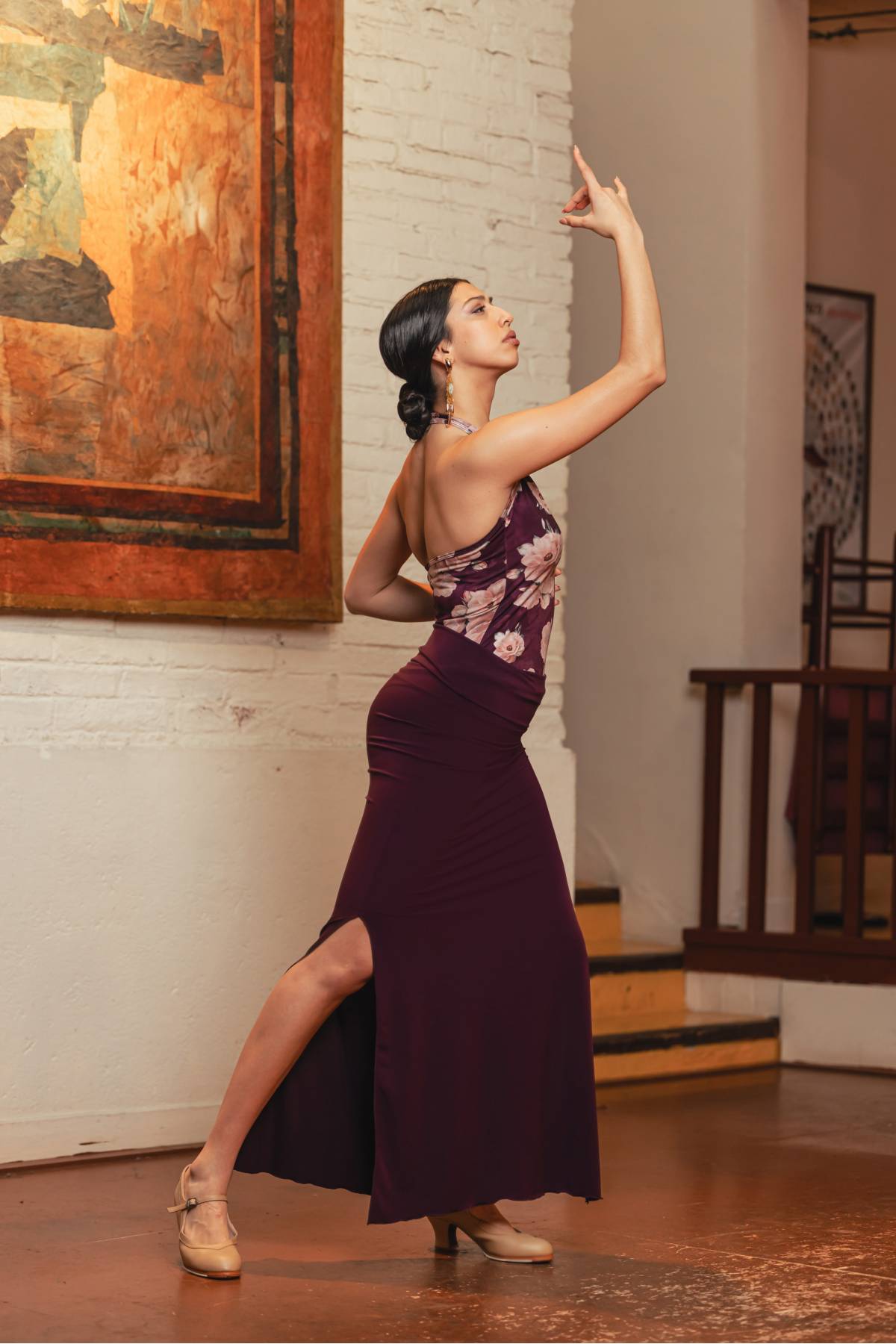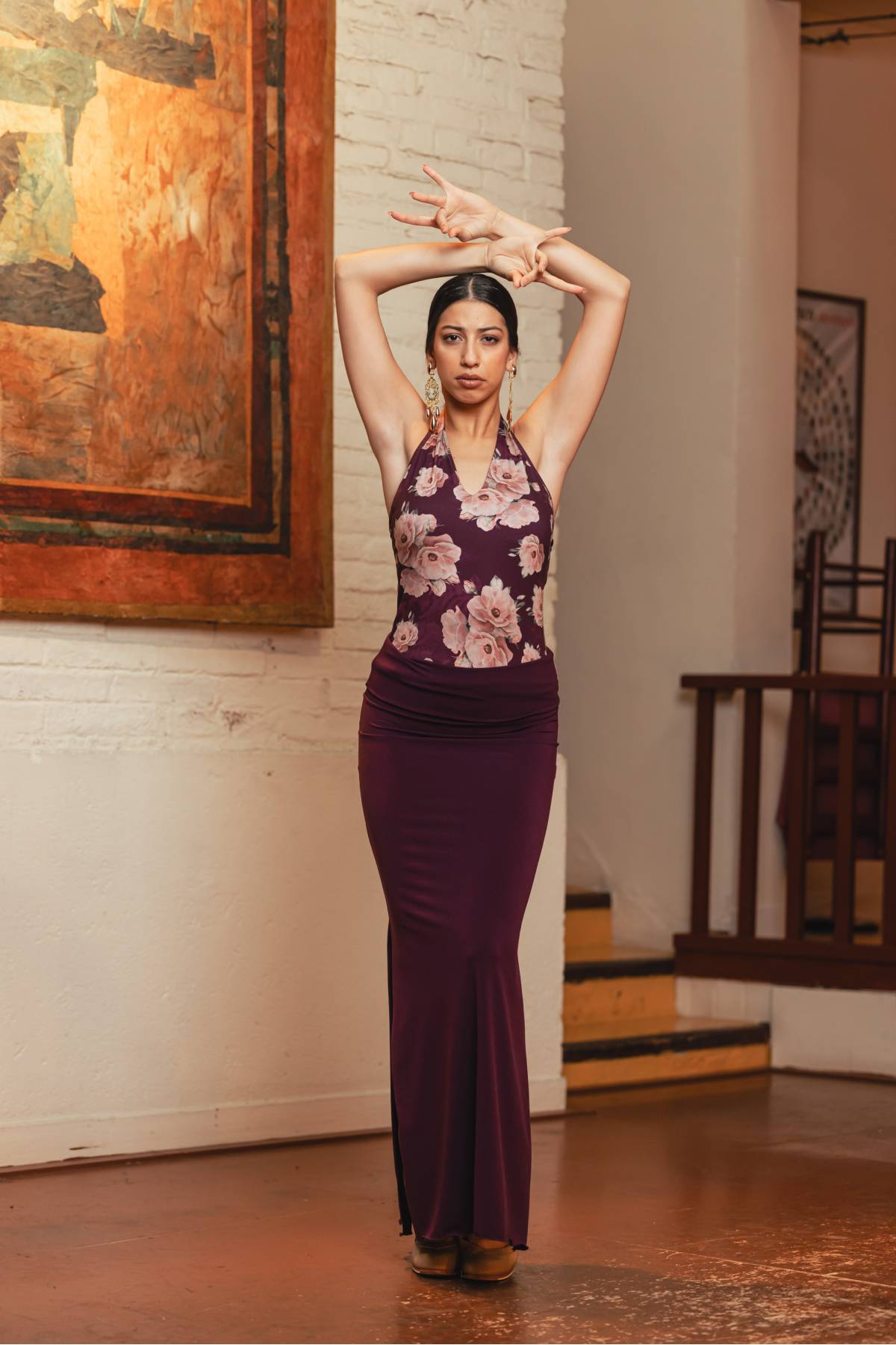 Enger langer Flamencorock (96% Polyester 4% Elasthan) perfekt zum Tragen mit Leggins und zum Üben.